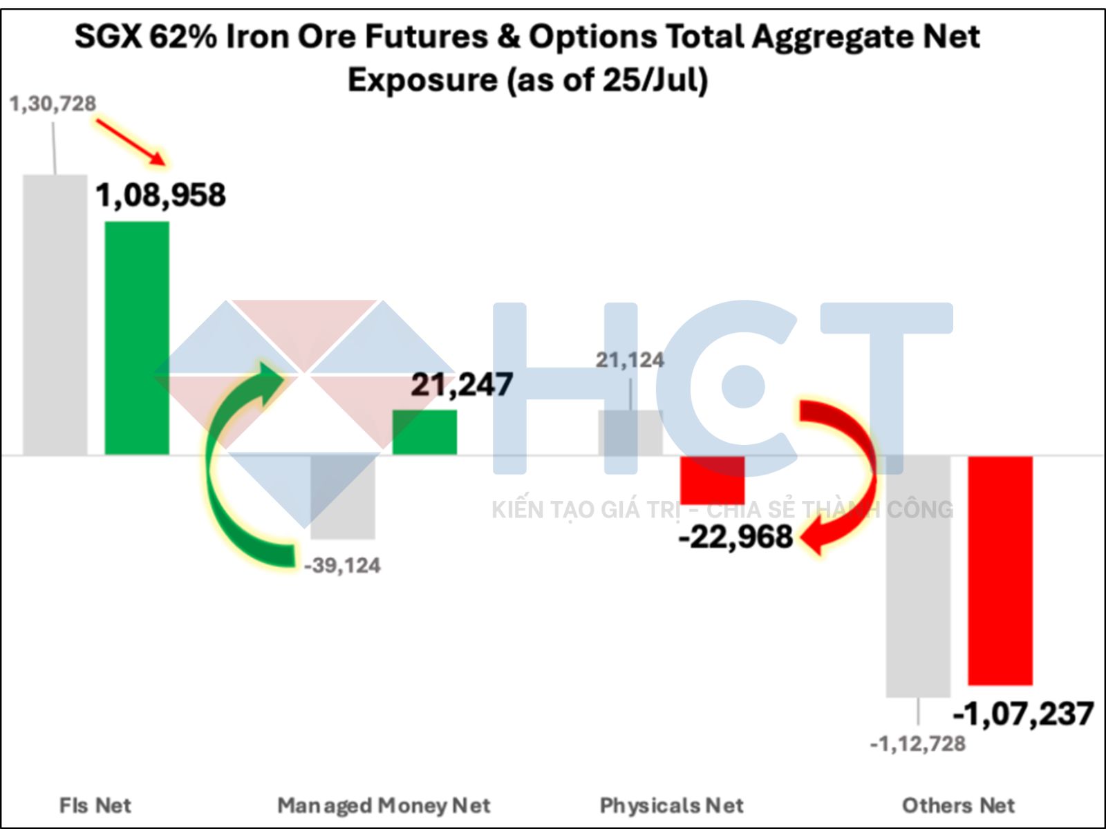 Nhóm quỹ đầu cơ phần lớn duy trì quan điểm bi quan trong suốt năm nay, chỉ có một giai đoạn tăng giá ngắn vào đầu năm 2025. Nhóm này thường phản ứng đồng nhịp với biến động giá quặng sắt, gia tăng vị thế bán khi giá giảm và thu hẹp vị thế khi giá phục hồi.