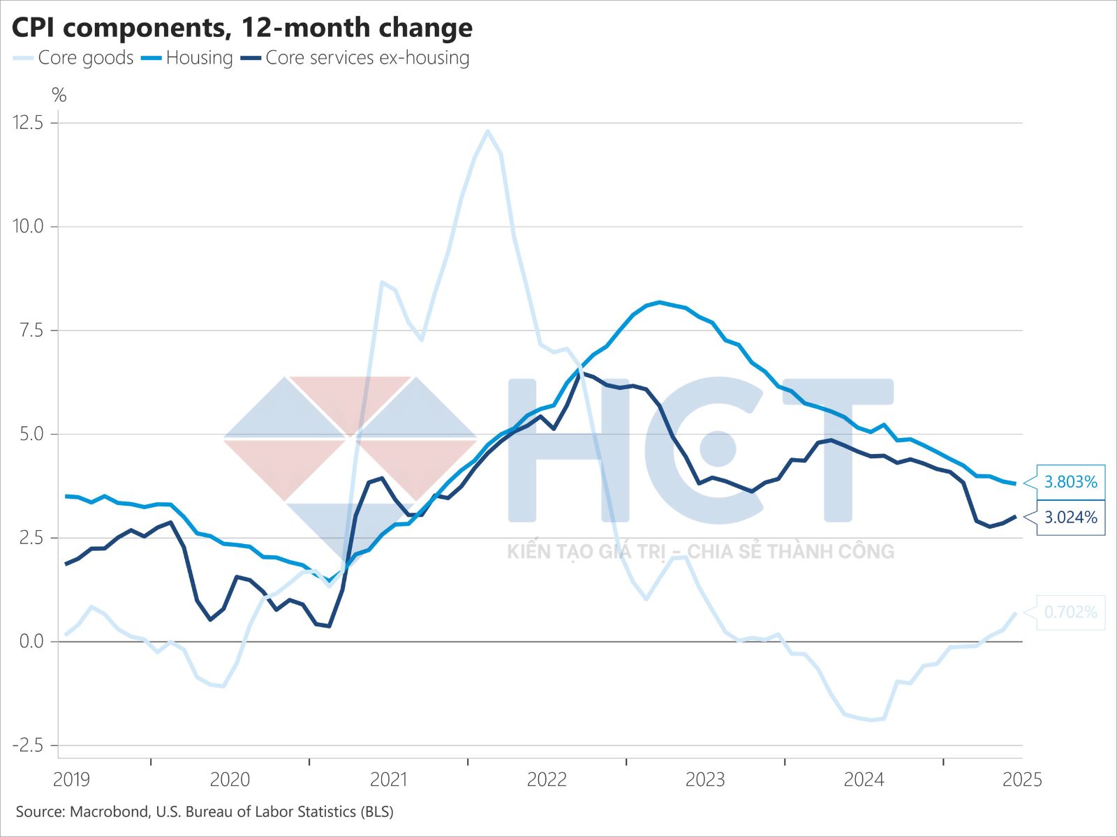 Lạm phát tiếp tục là một bài toán khó. Trong khi giá nhà và dịch vụ từng là lực đẩy khiến CPI duy trì ở mức cao, giờ đây chính các yếu tố này lại trở thành lực kéo hạ nhiệt giá cả. Ngược lại, nhóm hàng hóa lõi – từng giảm mạnh – nay lại có dấu hiệu tăng trở lại, phần nào đến từ kỳ vọng áp thuế nhập khẩu mới. Dù chưa áp dụng, các doanh nghiệp đã tranh thủ nhập hàng để "né" rủi ro, khiến số liệu trở nên khó đọc và khó dự đoán hơn.