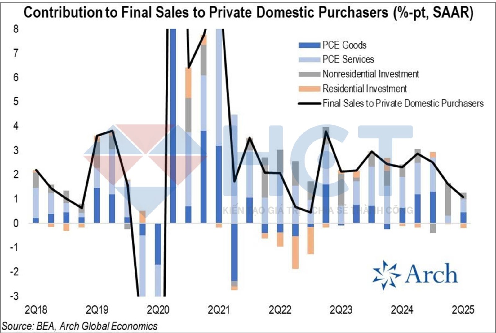 Chi tiêu và đầu tư thực tế của khu vực tư nhân Mỹ đang suy giảm rõ rệt, cho thấy rủi ro tăng trưởng yếu trong những quý tới