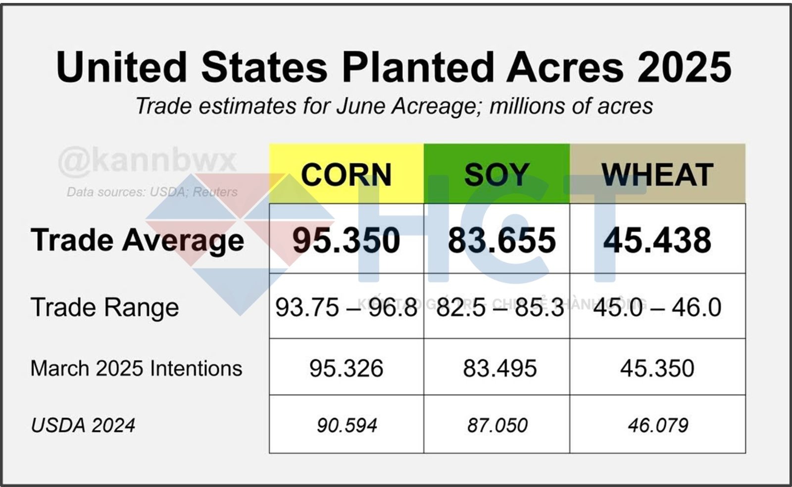 Bảng khảo sát ước tính diện tích gieo trồng tại Hoa Kỳ năm 2025 trước báo cáo diện tích gieo trồng tháng 6
