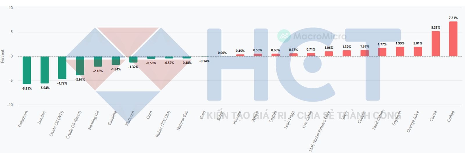 Giá ca cao đã tăng lên mức cao nhất trong 5 tuần rưỡi vào thứ Sáu (tăng gần 500 điểm trong tuần), nhưng vẫn thấp hơn nhiều so với mức cao kỷ lục vào cuối năm 2024. Trước đây, nhu cầu toàn cầu được cho là bền vững dù giá cao, nhưng kể từ đầu năm nay, ca cao đã chứng kiến sự sụt giảm nhu cầu. Sau đợt hồi phục tuần này, giá ca cao có dấu hiệu bị định giá quá cao và có thể sớm quay đầu giảm trở lại.