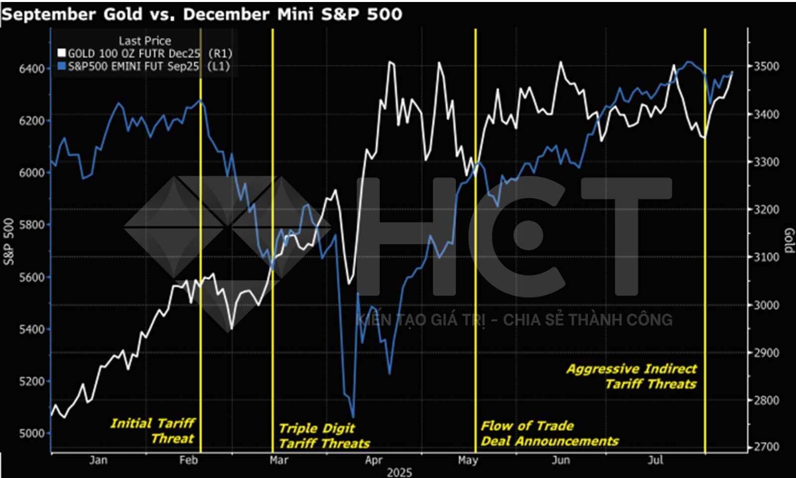 Chiến tranh thương mại toàn cầu đã leo thang khi Tổng thống Trump tìm cách gây áp lực buộc Nga chấm dứt chiến tranh với Ukraine, thông qua việc áp thuế đối với các bên mua dầu thô Nga. Vận chuyển dầu toàn cầu đã bắt đầu thay đổi để né thuế, đặc biệt khi nguồn cung dầu toàn cầu dồi dào, trong khi nguồn cung của Mỹ lại khá eo hẹp. Cuộc chiến thuế quan này khả năng sẽ kìm hãm đà gia tăng thâm hụt ngân sách Mỹ. Xu hướng giảm của đồng USD, cùng với bất ổn kinh tế và chính trị sẽ là những yếu tố quan trọng.
